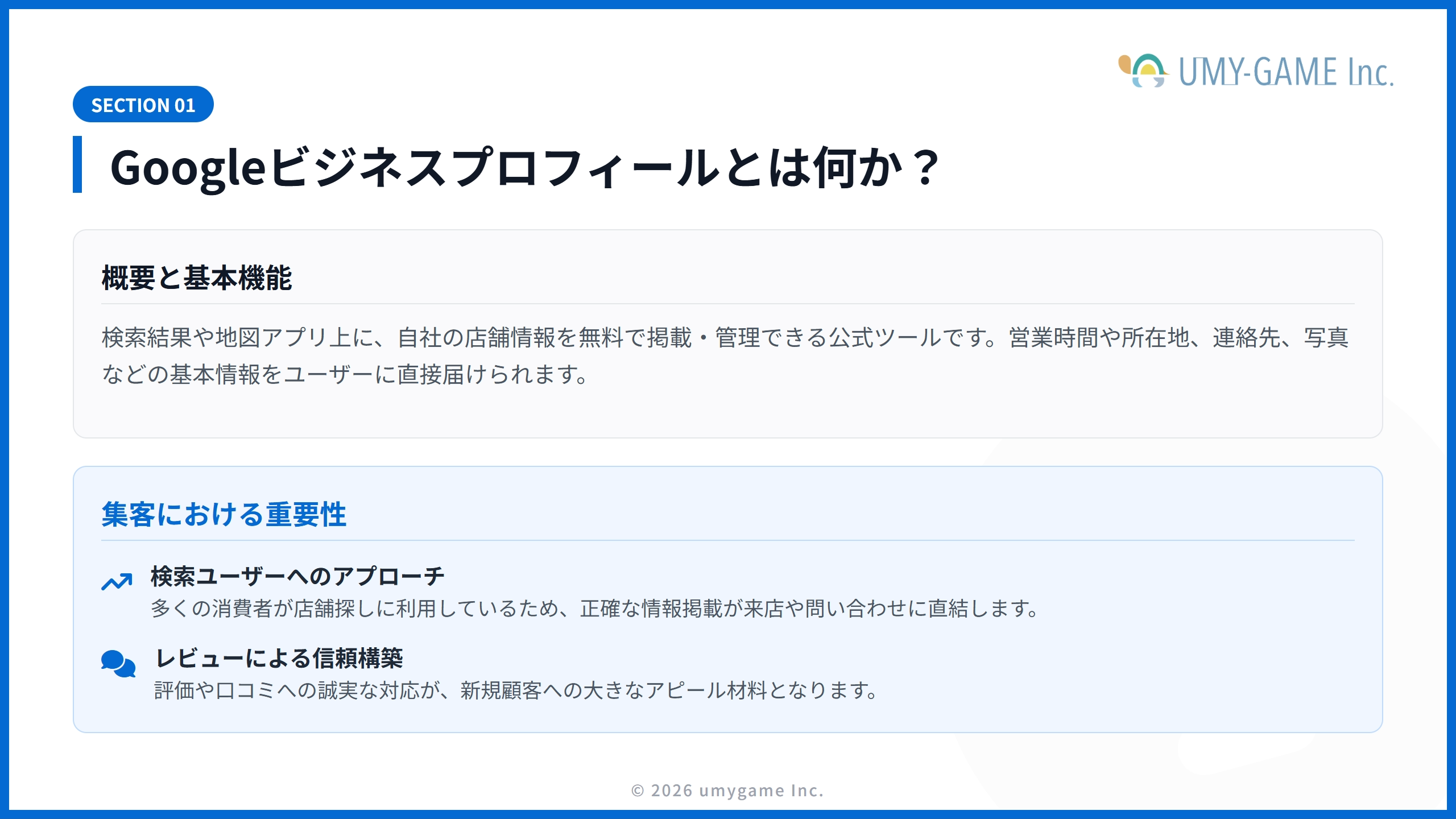 Googleビジネスプロフィールは、店舗や企業がインターネット上での visibility(見えやすさ)を高めるために不可欠なツールです。適切に登録し、管理することで、地域の検索結果やGoogleマップでの露出が向上し、集客力の強化につながります。
