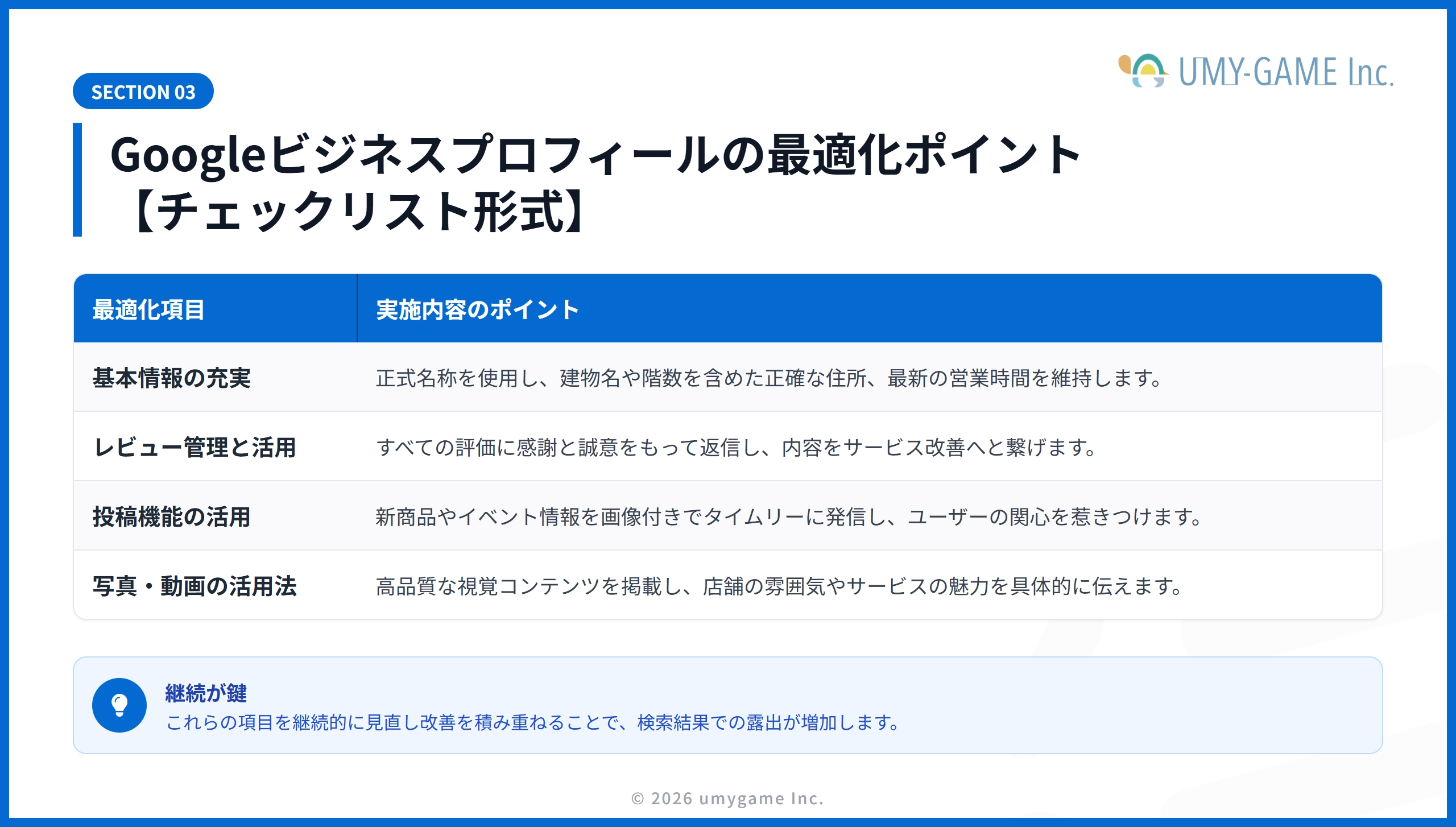 Googleビジネスプロフィールの最適化ポイント【チェックリスト形式】
