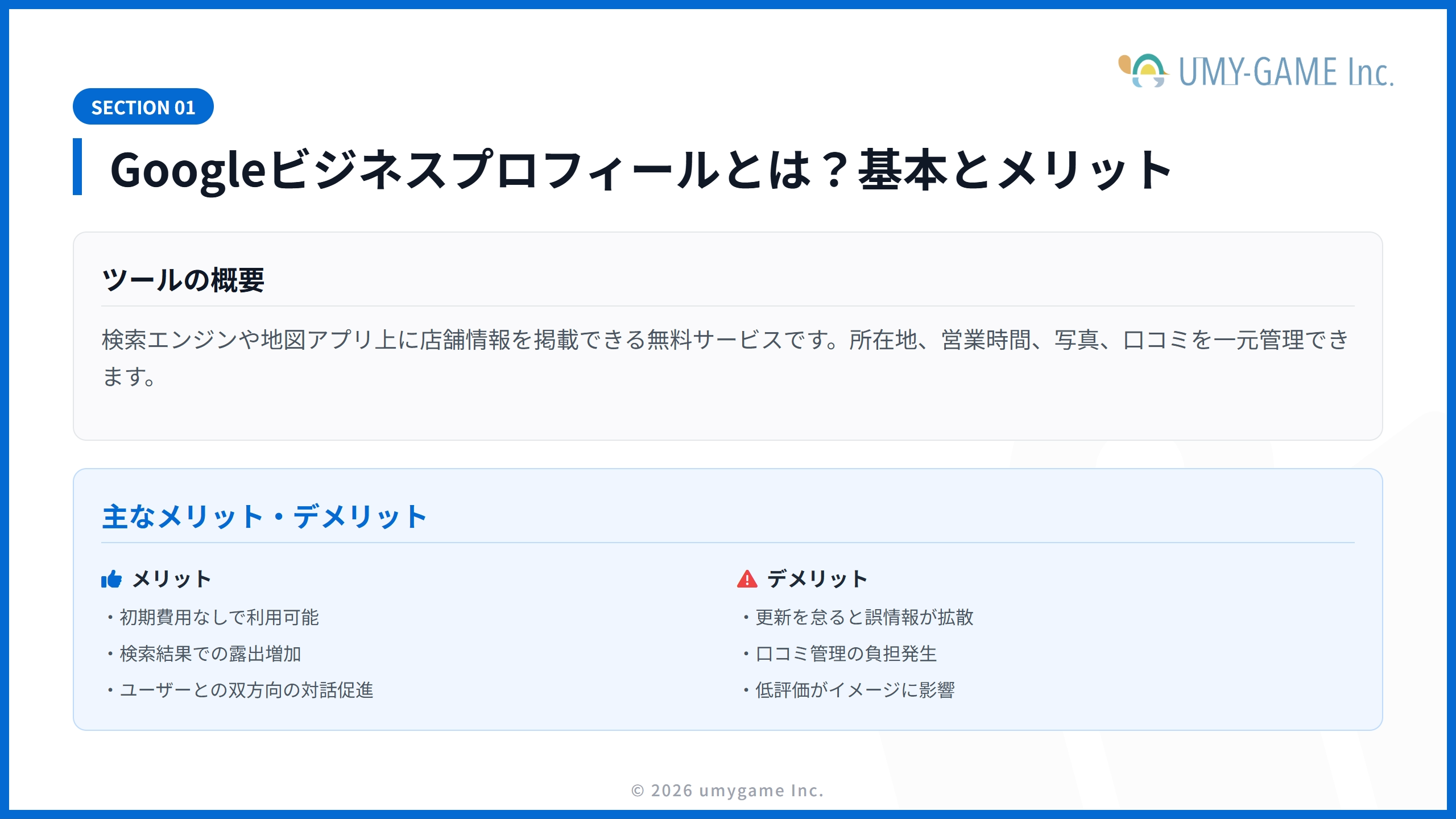 以下の項目では、Googleビジネスプロフィールの機能について詳しく解説します。