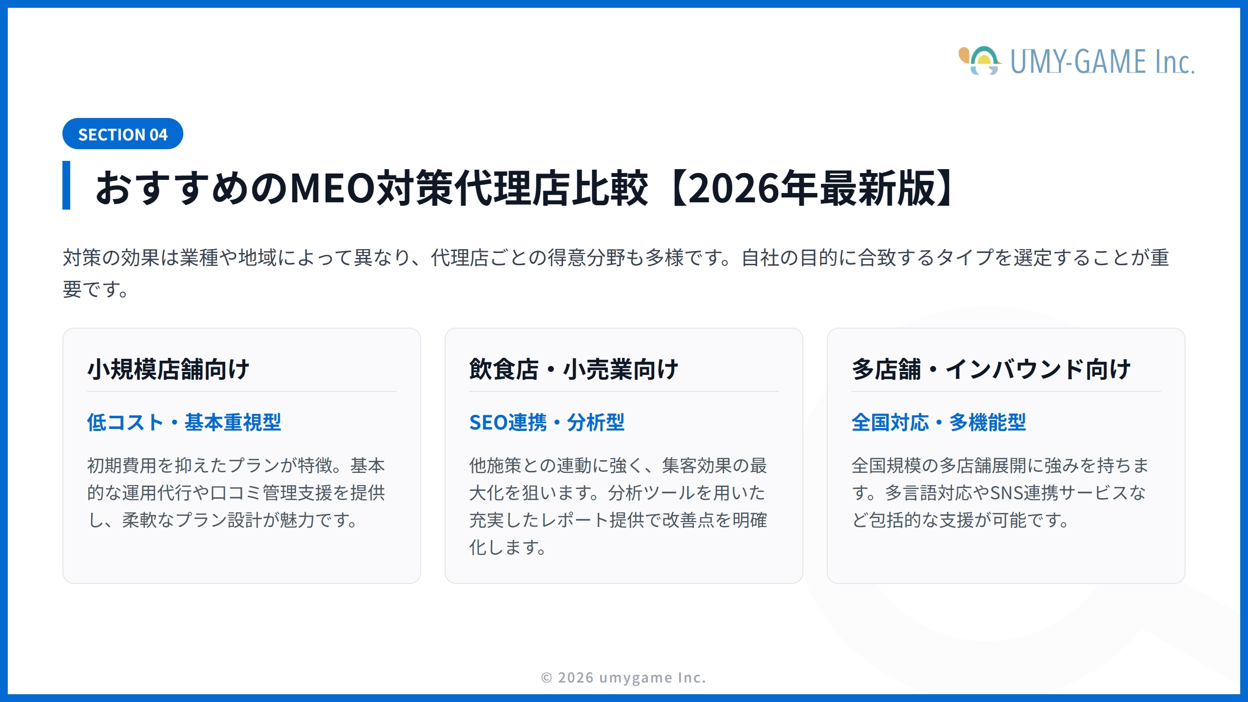 これらを踏まえ、自社の課題や予算、体制に最適な代理店を慎重に選ぶことが、効果的かつ持続可能なMEO対策の第一歩となります。